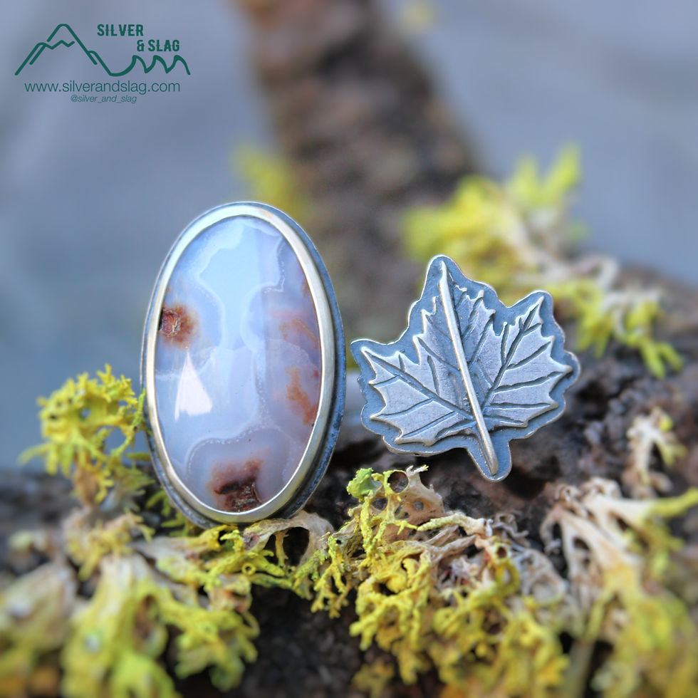 Mojave Desert Agate set in Sterling Silver Sycamore Leaf Adjustable Ring