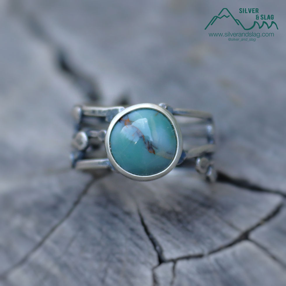 Pacific Coast Kelp Forest Inspired Statement Ring w Malibu Agate - Size 6.5